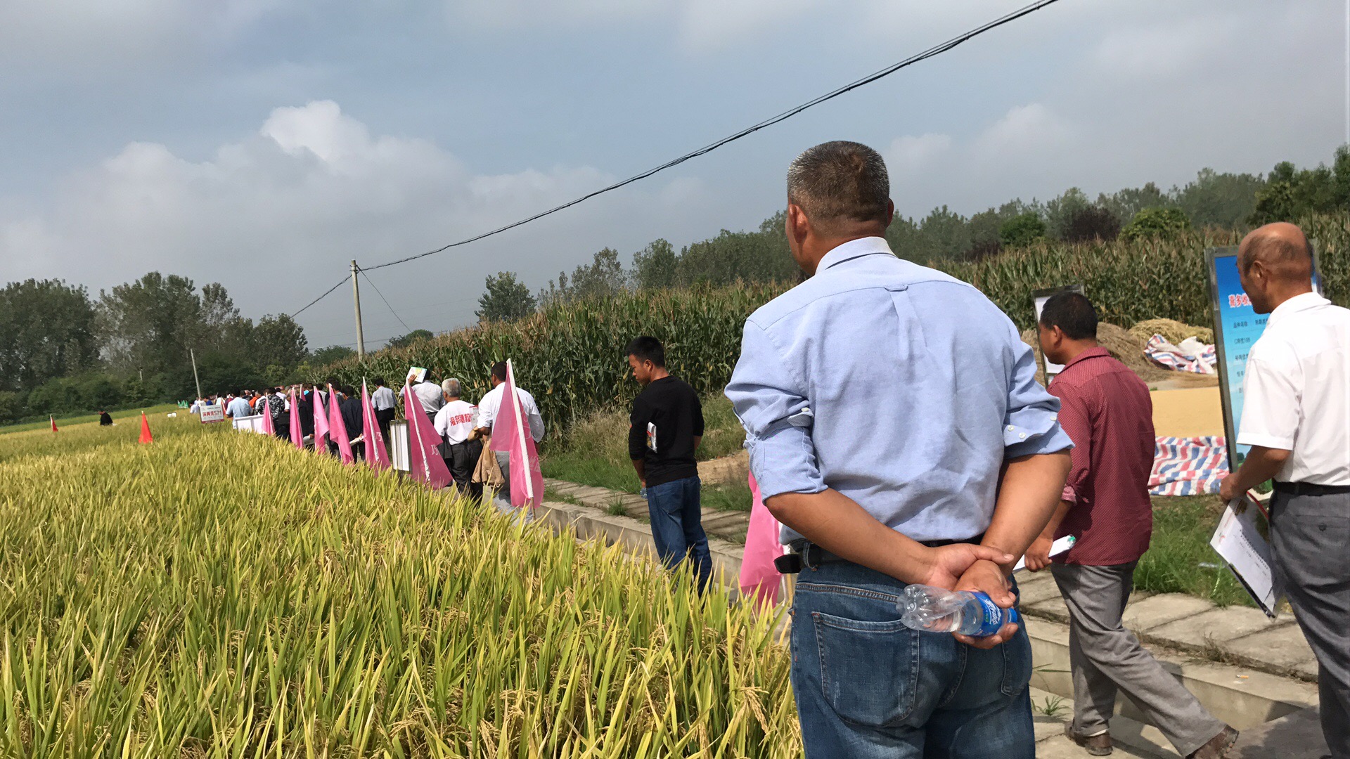 9月22日上午,來(lái)自霍邱、壽縣、金安、裕安等地的種子經(jīng)銷(xiāo)商、種糧大戶50余人,來(lái)到位于金安區(qū)稻麥良種場(chǎng)的安徽喜多收試驗(yàn)示范基地,現(xiàn)場(chǎng)觀摩見(jiàn)證了示范基地種植的C兩優(yōu)198收割、計(jì)數(shù)、稱重、測(cè)產(chǎn)等全過(guò)程;同時(shí)參與了現(xiàn)場(chǎng)目測(cè)、估計(jì)、猜猜畝產(chǎn)的有獎(jiǎng)“猜產(chǎn)”活動(dòng)。當(dāng)參會(huì)人員親眼所見(jiàn)測(cè)產(chǎn)結(jié)果時(shí),一個(gè)個(gè)臉上皆拉出了滿意的笑容。紛紛贊嘆:在今年高溫?zé)岷?yán)重、水稻倒伏較多情況下,這里的C兩優(yōu)198不僅經(jīng)受住了高溫、倒伏的考驗(yàn),而且還獲得了平均畝產(chǎn)1450斤以上的好收成,真令人振奮!
