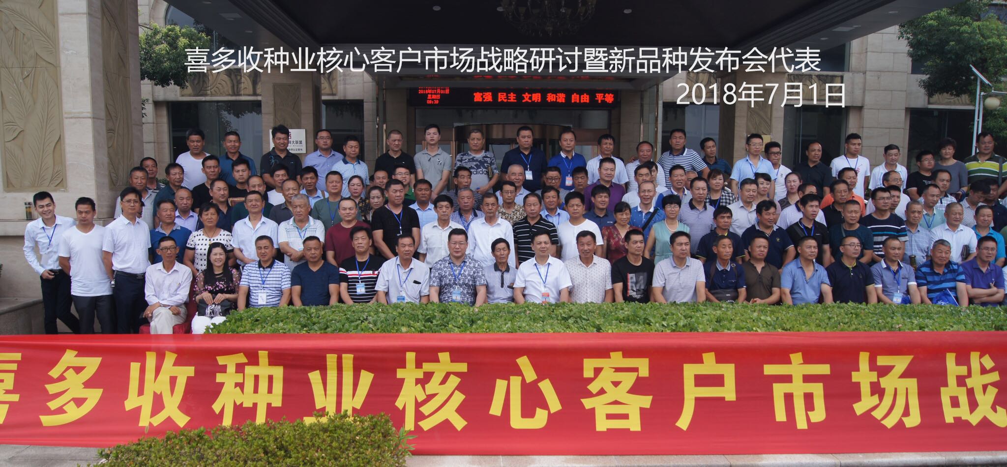 2018年6月30日至7月1日,“喜多收種業(yè)核心客戶市場戰(zhàn)略研討及新品種發(fā)布會(huì)”在六安市西海假日酒店隆重召開。來自安徽、江蘇、湖北、湖南、河南、江西等省200余位核心客戶及種業(yè)界人士歡聚一堂,共同探討新形勢下種子市場戰(zhàn)略,共同商定新品種合作推廣大計(jì)。